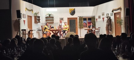 Nachdem wir 2024/25 mangels Spieler nicht Theaterspielen konnten, suchten ein paar der Gruppe intensiv nach neuen Mitspielern und wurden tatsächlich auch fündig. Mit Jennifer Starosta, Benjamin Lutz und Max Kraus konnten drei Neulinge gewonnen werden, die das bestehende Ensemble bereichert haben. Bei der ersten gemeinsamen Besprechung einigten wir uns auf ein Stück von Beate Irmisch. Es passte, angesichts des 50-jährigen Vereinsjubiläums, perfekt zu uns. Wir machten uns also gleich an die Rollenverteilung und legten die ersten Probeabende fest. Am 17. November konnten wir die Kulissen aufbauen und von da an auf der großen Hallenbühne proben. In über 20 Proben legten wir den Grundstein für zwei sehr erfolgreiche Auftritte am 2. und 3. Januar. Eine große Herausforderung war die erstmals verwendete Beschallung eines externen Profis u.a. mit Headset für jeden einzelnen Spieler. In vier Proben gewöhnten sich jedoch alle recht schnell an die neuen Gegebenheiten und für die Besucher war es eine wesentliche Verbesserung. Auch im Rahmen des Bedienungspersonals gab es eine gravierende Änderung, die ebenso reibungslos funktionierte. Durch ein digitales Kassensystem wurde die Aufnahme und Abrechnung von Speisen und Getränken deutlich vereinfacht und beschleunigt. An beiden Aufführungen konnte unser Finanzvorstand Jens Liedtke die Besucher jeweils in einer ausverkauften Halle begrüßen. Alles in allem war es eine sehr erfolgreiche Theatersaison. Auf diese werden hoffentlich noch weitere folgen. Ein großer Dank an alle Spieler und dem Team hinter den Kulissen!